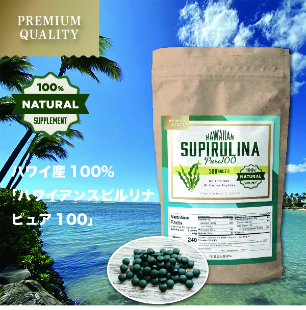 【ハワイアンスピルリナ ピュア100】 ハワイ島の海洋深層水(海底600m)で元気に育つ海の藻をスピルリナと言い、 約30億年以上も昔に地球に誕生した最古の植物と言われています。 今ではその栄養バランスの良さからスーパーフードの王様とまで呼ばれるまでに。 スピルリナは 古代の原住民からも安全で貴重な栄養源として利用されてきました。 混ざりもの一切なし天然100%、ミネラル、ビタミンはもちろん、タンパク質、βカロチン、またハワイ産のスピルリナには貴重なミネラル「バナジウム」も含まれてます。 古くから安心して食されてきたスピルリナは人の体にとって大変馴染みが良く、長い食経験を持っている安心・安全な食品です。