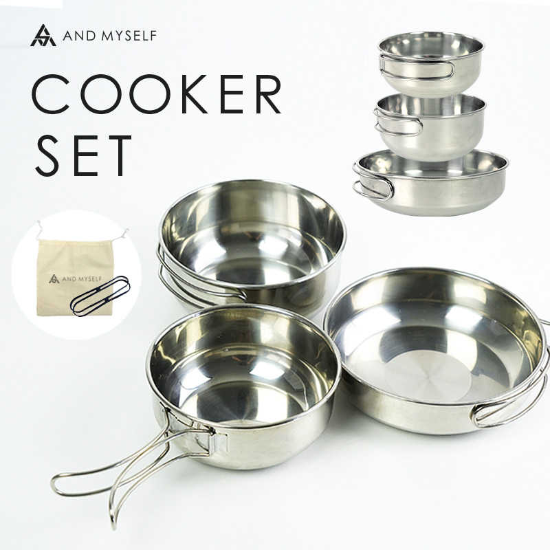 クッカー クッカーセット キャンプ用 料理道具 ソロ ステンレス 食器 鍋 アウトドア ソロキャンプ キャンプ用品 AND MYSELF アンドマイセルフ