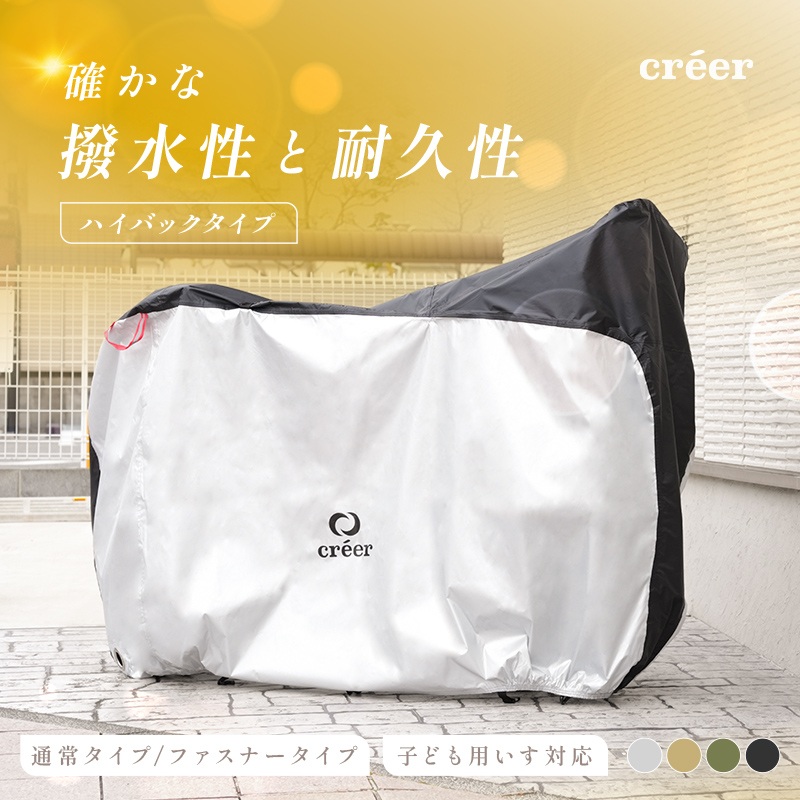 【クーポンで更にお得】自転車カバー ハイバック 防水 子供乗せ 飛ばない 丈夫 風飛び防止 おしゃれ かわいい かぶせるだけ 収納 簡単 クレエ