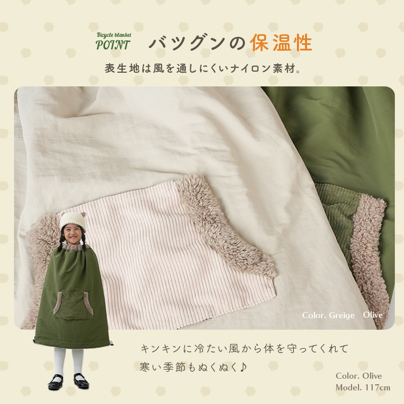 通園やお買い物で自転車に乗せたお子様の防寒に♪