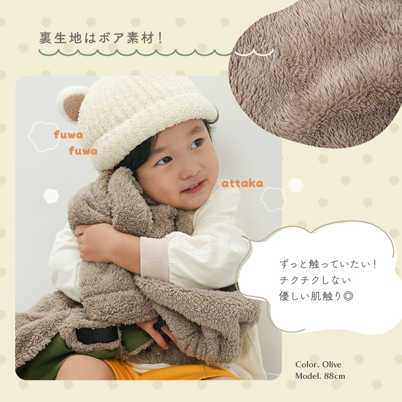表生地は風を通しにくいナイロン素材、裏生地はボア素材を採用