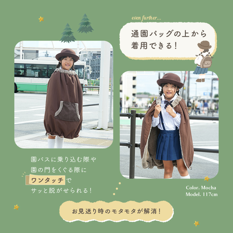 男の子 女の子 簡単着脱 簡単装着 撥水 雨 雪 ひざ掛け 上着代わり 羽織る