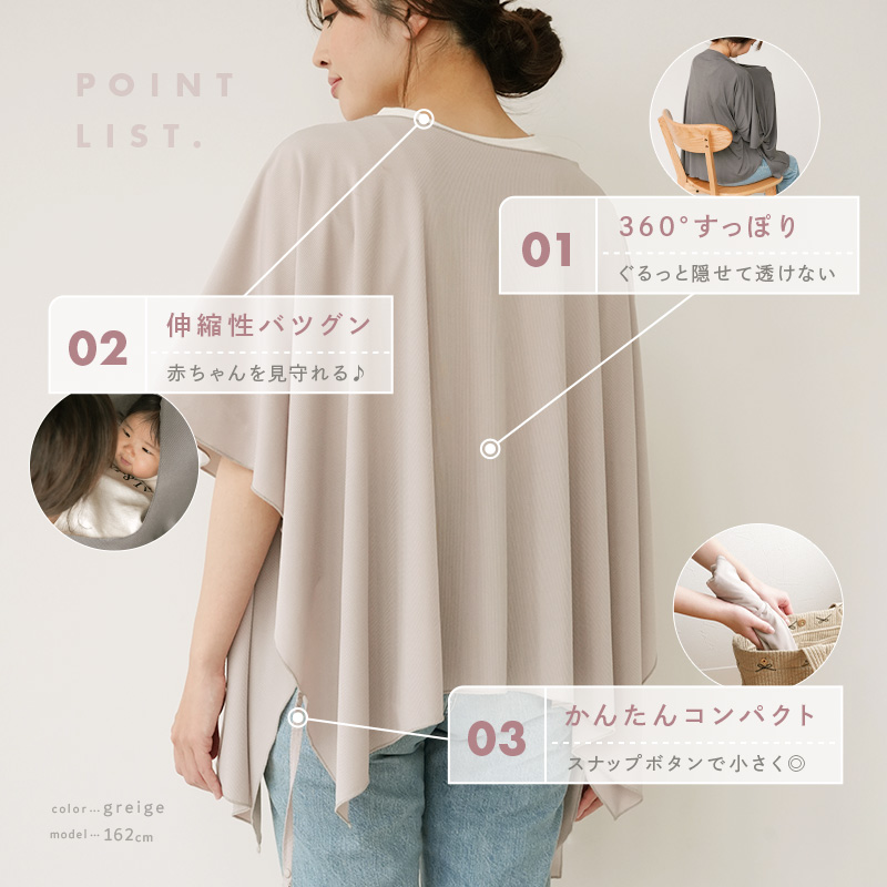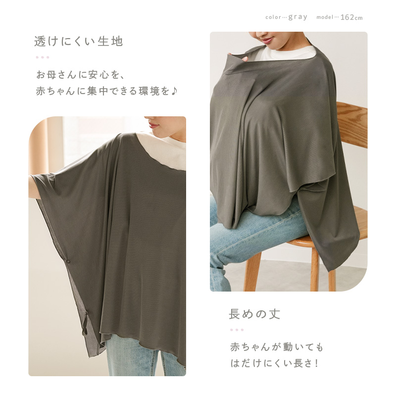 \\60度包み込むポンチョ型で、後ろや横も隠せる透けにくい授乳ケープ//