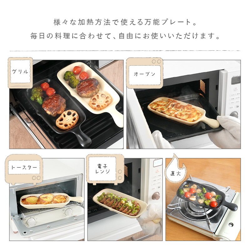 グリル、オーブン、トースター、電子レンジ、直火に対応!