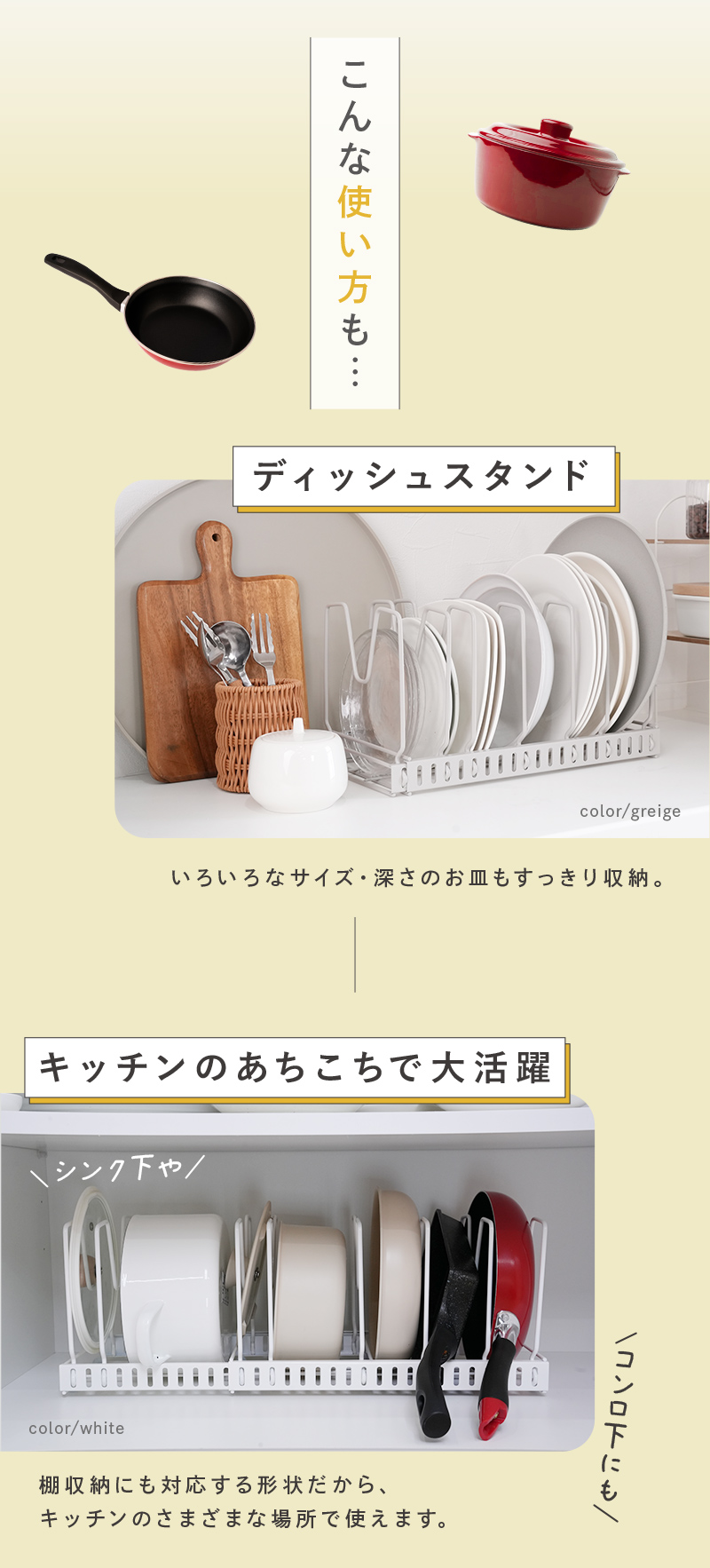 収納ラック フライパンラック 伸縮タイプ ふたスタンド