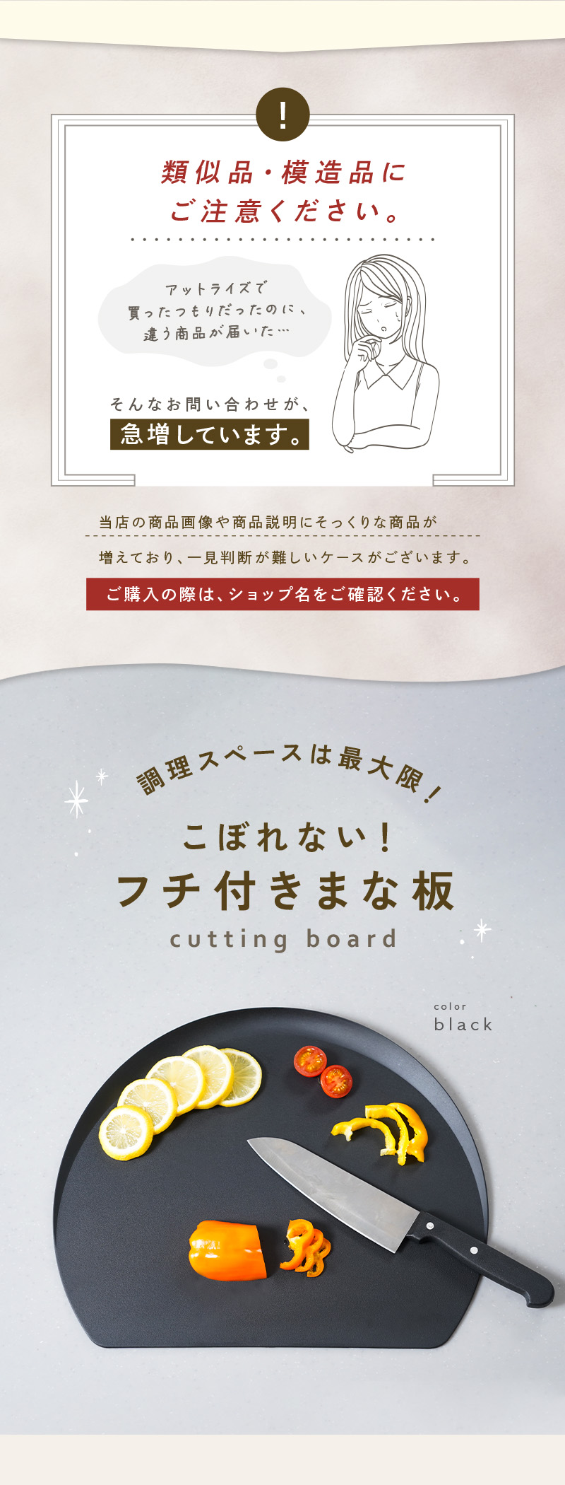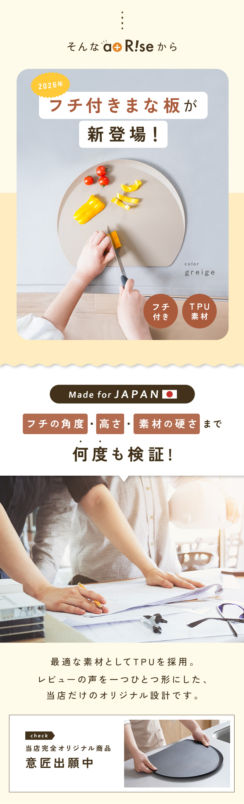 atRiseオリジナルのふち付きまな板です