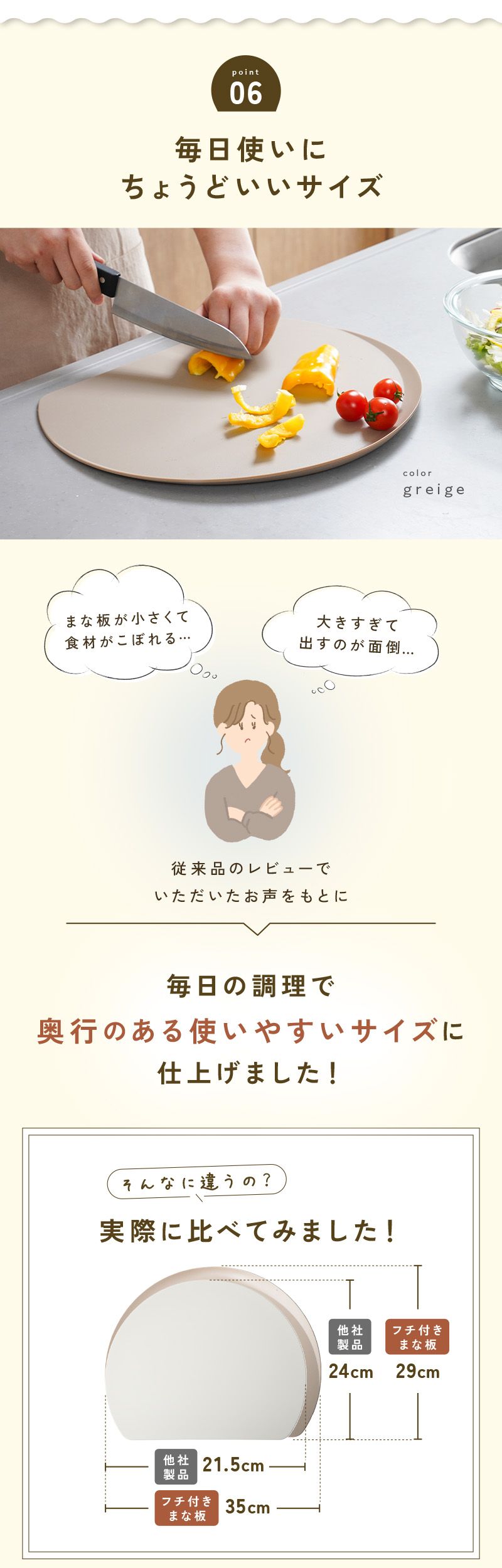 もうこぼれない。ふち付き まな板