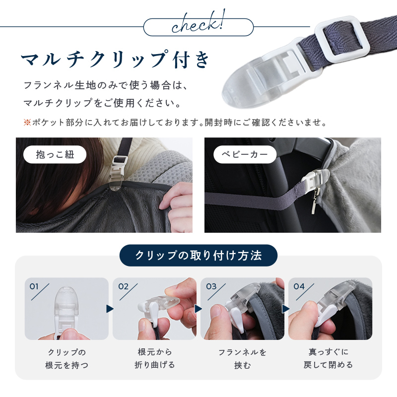 抱っこ紐・ベビーカーの両方に簡単取り付け可能。