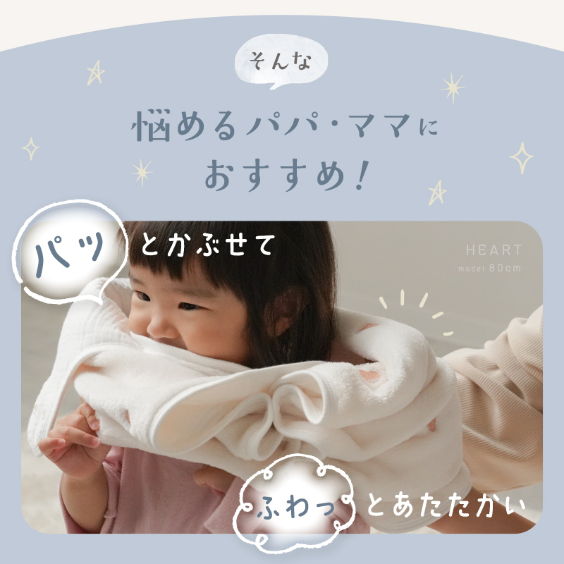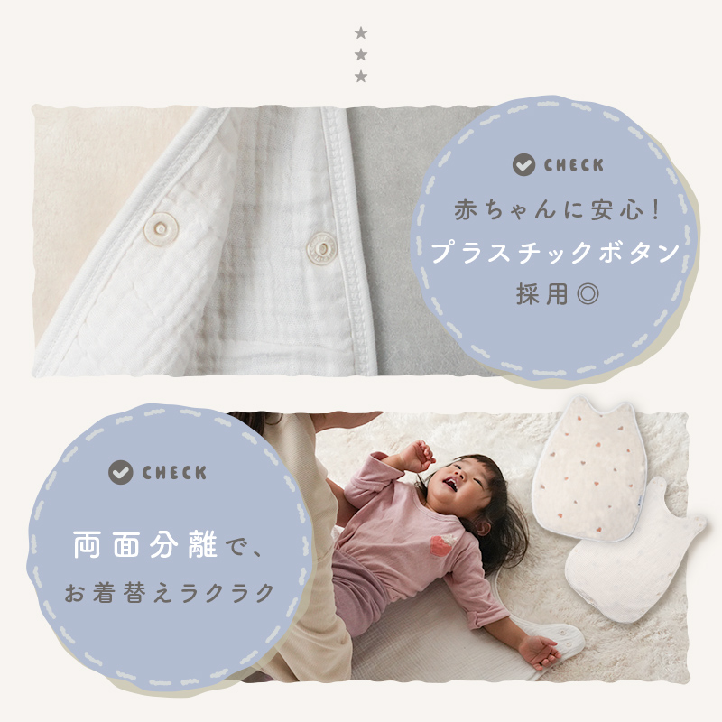 眠っている間の着脱もかんたんで、忙しいママ・パパも大助かりです。