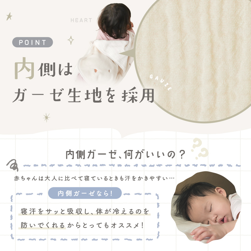 赤ちゃん 新生児 着る毛布 内側ガーゼ 防寒 2WAY