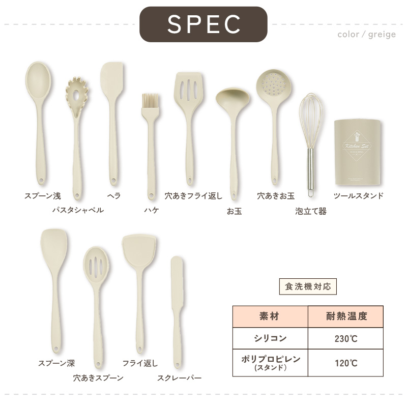 ツールセット 高品質 シリコン 耐熱 食洗機 対応