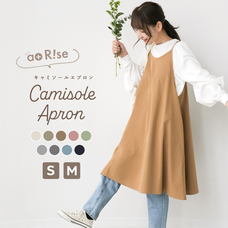 キャミソールエプロン シワになりにくい 動きやすい ワンピース ゆったり かわいい おしゃれ かぶるだけ ロング丈 シンプル カフェエプロン