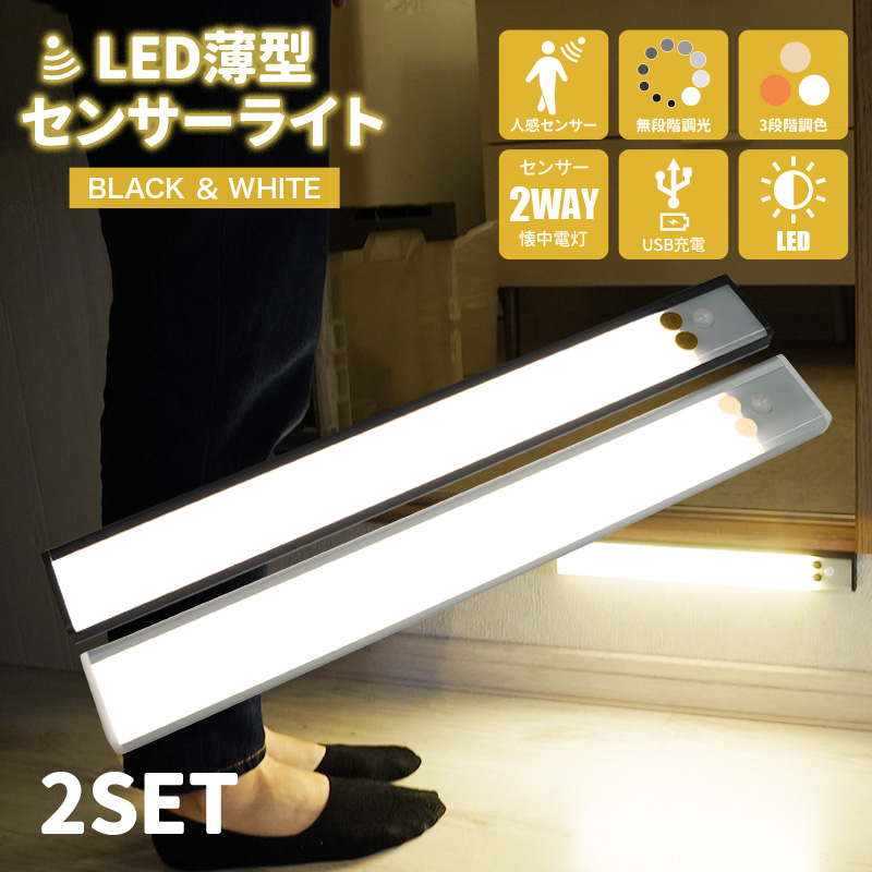 【クーポンで更にお得】【2点セット】人感 センサーライト 充電式 マグネット式人感センサーライト led 3色調整可能 無段階調光 USB 薄型 足元灯 明暗センサー