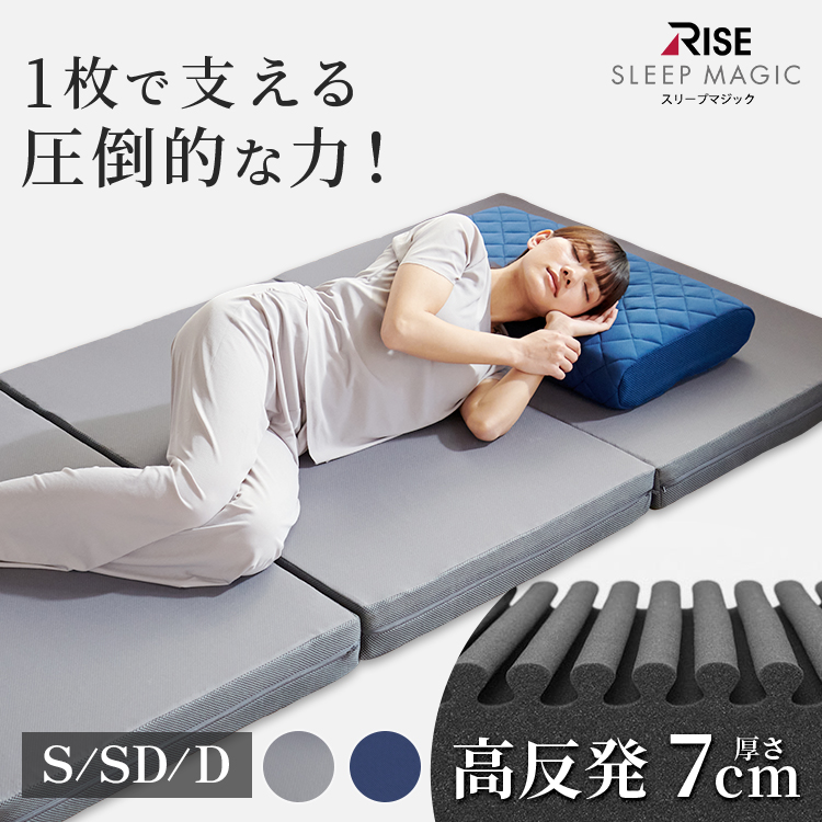 高反発マットレス 7.0 シングル スリープマジック 7cm 三つ折り 折りたたみ マットレス ライズ東京 高反発 軽量 RISE 体圧分散 腰痛