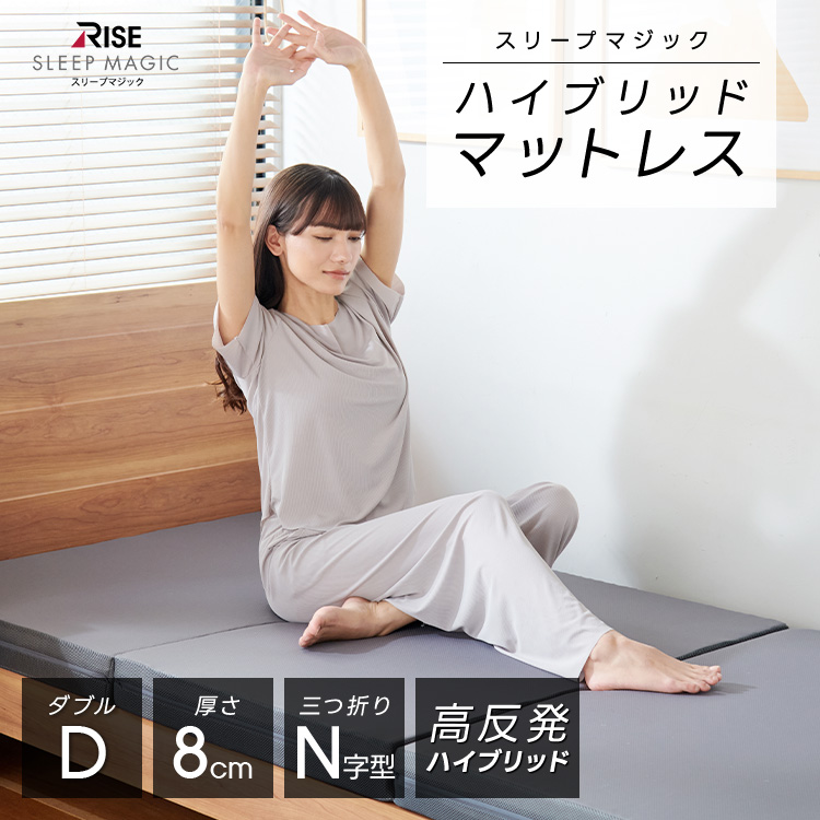 ハイブリッド マットレス 8.0 ダブル スリープマジック 8cm 高反発マットレス 腰痛対策 三つ折り 折りたたみ RISE ライズ 高反発 2層