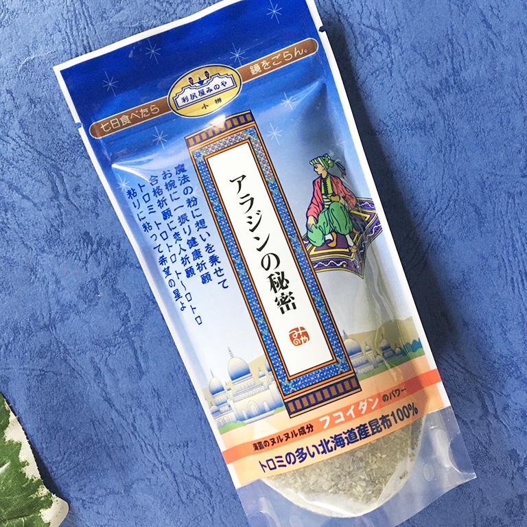 北海道小樽のお土産で人気となっている 利尻屋みのやのアラジンの秘密!ねばりのある昆布を砕いたものです。昆布100% 無添加。