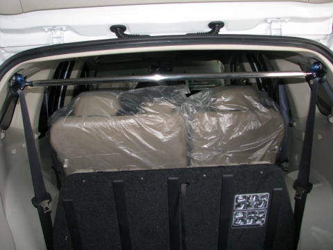 リヤシートベルトの左右をつなぎ剛性を高めます。