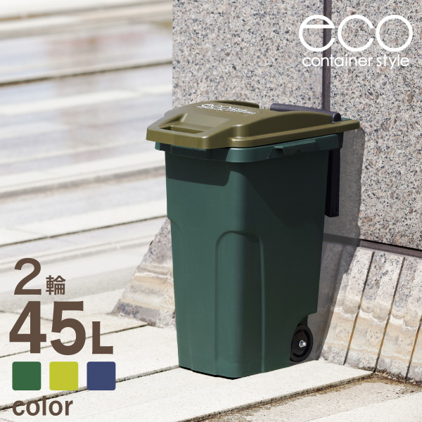 容器に直径100mmの車輪が2個セットされて、重いゴミの収集や廃棄場までの移動ラクラク行え便利です。