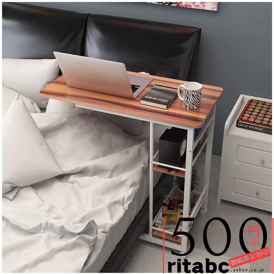 サイドテーブル ベッドサイドデスクC字型ベースラップトップデスクホームオフィスサイドテーブルモバイルテーブルワークステーションキャスター付きオーバーベッ
