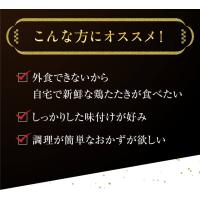 【専用タレ付き】より美味しくお召し上がりいただくために、専用のタレをお付けしております。鶏肉との相性をプロが本気で考えた特殊ブレンドの鶏タタキ専用のたれをぜひご堪能ください。