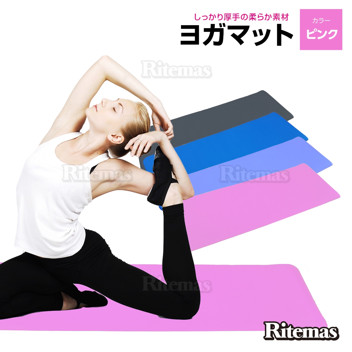 ヨガマット 10mm トレーニングマット 185×61×1cm ピラティス エクササイズマット ゴム 収納バンド付 おしゃれ ダイエット器具 腹筋 脚痩せ フィットネス 桃