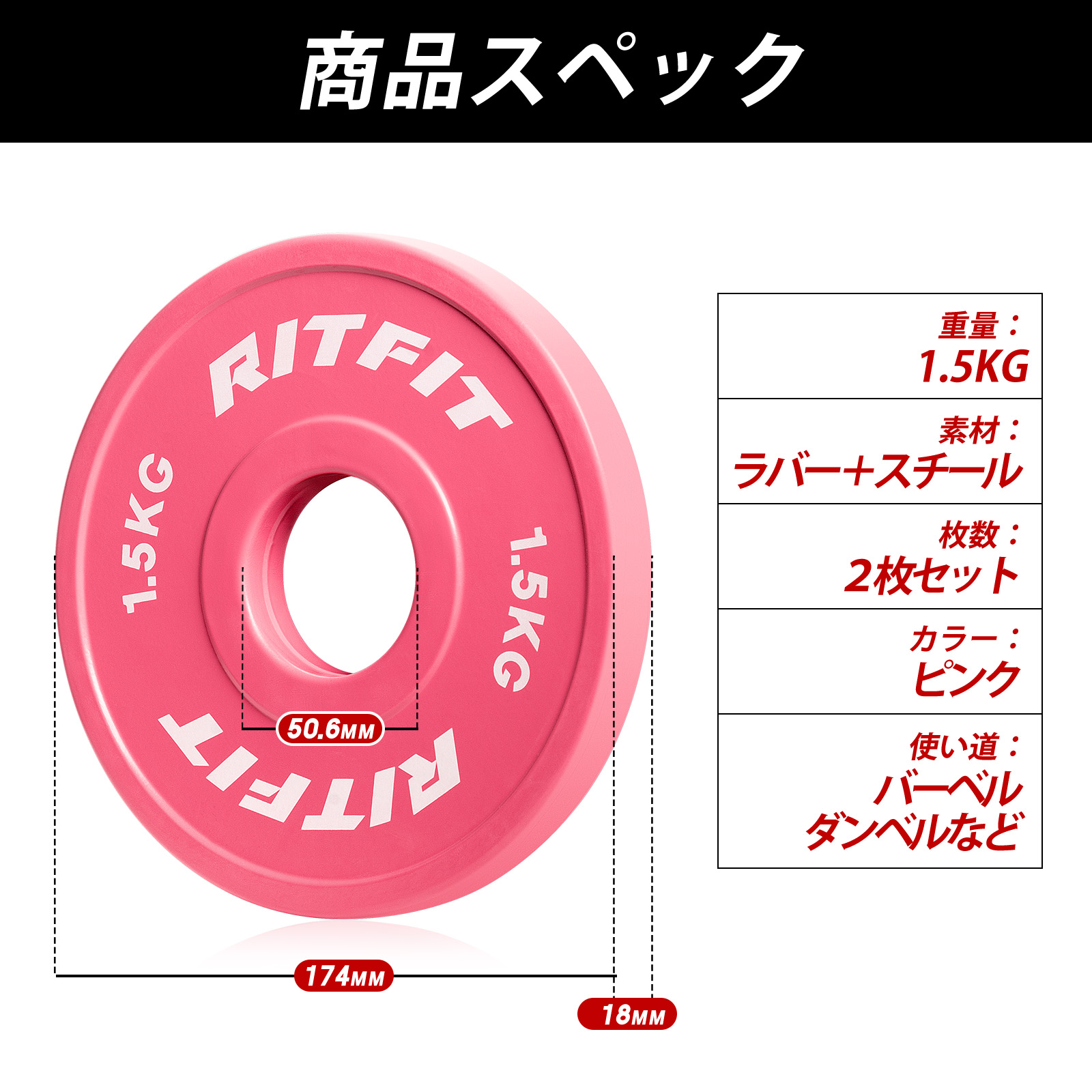 RITFIT チェンジレート バンパープレート ラバーコーティング バーベルダンベルプレート ウェイトリフティング 筋トレ 女性 重り 穴径5cm 1.5KGペア