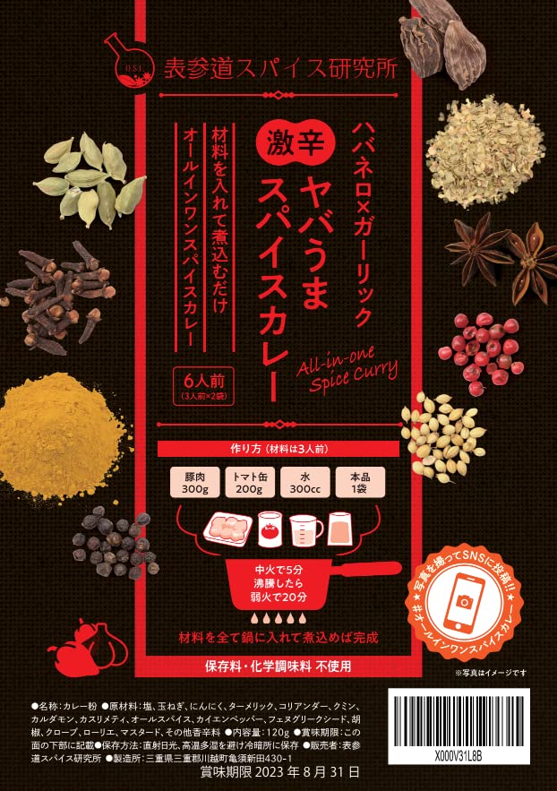 表参道スパイス研究所 ハバネロ*ガーリック 激辛ヤバうまスパイスカレー 激辛 辛口 無添加 カレールー