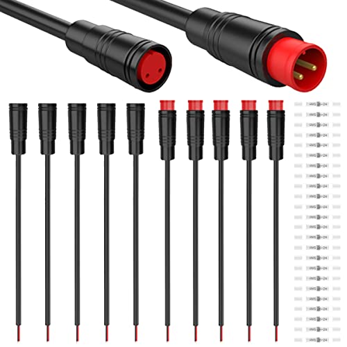 5組 防水 Julet 2ピン コネクター Ebike 延長ケーブル - 20cm メス&オス プラグワイヤー 電動自転車ライト スロットル Eブレーキ DIYバイクプロジェクト用