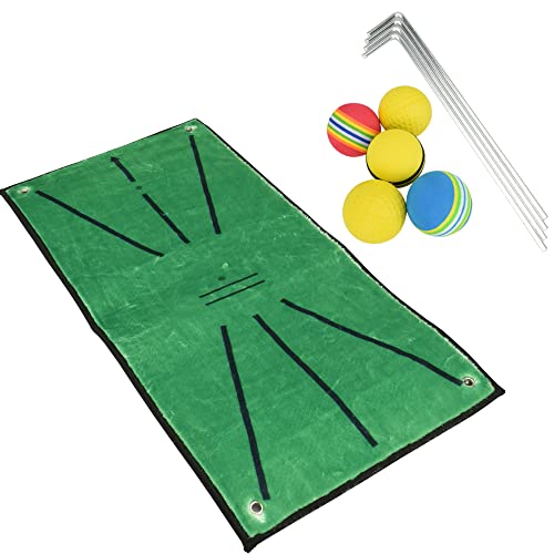 ゴルフ練習用マット ボール付き 素振り スイング ソフト素材 高耐久性 ショット対応 (ライトグリーン)