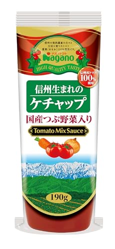 ナガノトマト 信州生まれのケチャップ 国産つぶ野菜入り 190g