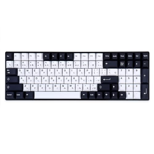 PBTキーキャップ これらの黒い日本語キーキャップは、高品質で厚いPBT素材で作られています。キーキャップは、約1.4mmの厚さで、非常に耐久性があります。 また、昇華技術を利用して、だから キーキャップの模様は色あせにくいです。