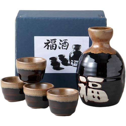 酒器セット 徳利 おちょこ セット 径9*高13.8cm 430ml 福文字 酒器揃 熱燗 冷酒 陶器 美濃焼 日本製