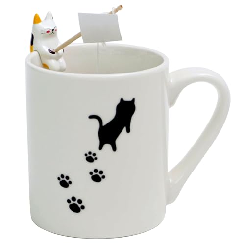 マグカップにはねこの足跡付き お散歩してる様な絵付けがかわいらしい、手になじむ持ちやすいサイズのカップです。