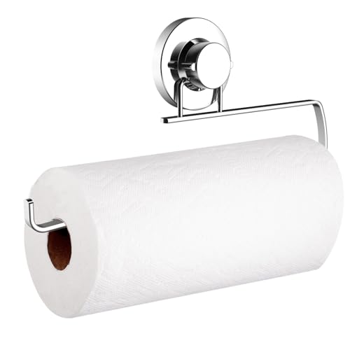 キッチンペーパーホルダー 吸盤 キッチンペーパーホルダー 片手で切れる ステンレス鋼 タオル掛け 冷蔵庫 台所 キッチン 収納、海外製の大判タイプにも対応 約W2