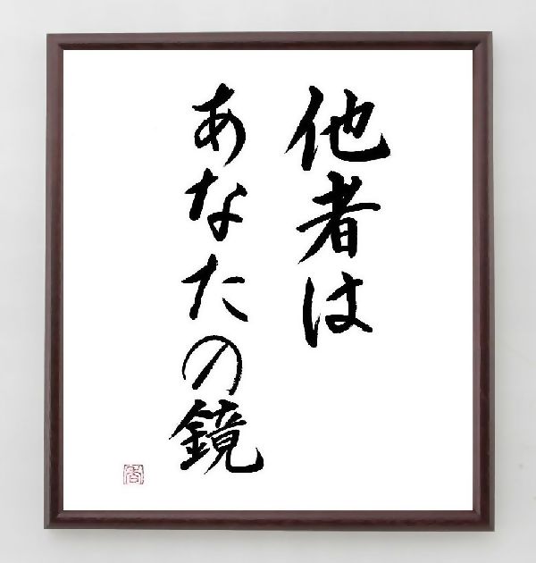 名言「他者はあなたの鏡」手書き書道色紙額/毛筆直筆済み