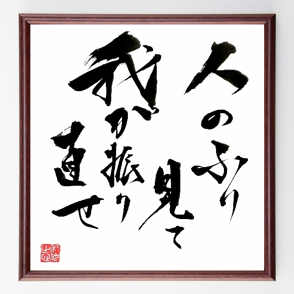 名言「人のふり見て、我が振り直せ」手書き書道色紙額/毛筆直筆済み