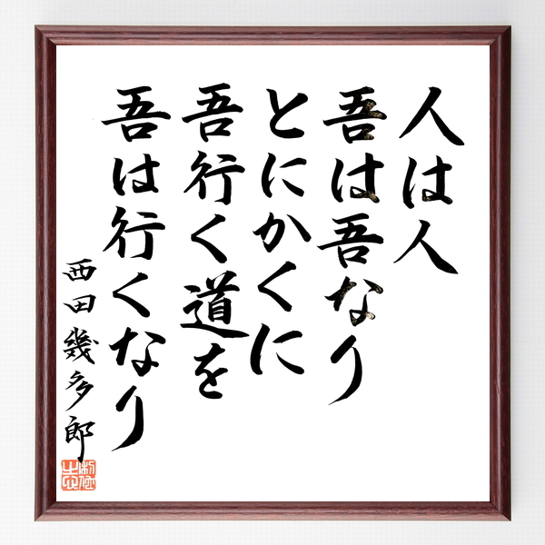 西田幾多郎の名言「人は人、吾は吾なり、とにかくに、吾行く道を、吾は行くなり」手書き書道色紙額/毛筆直筆済み