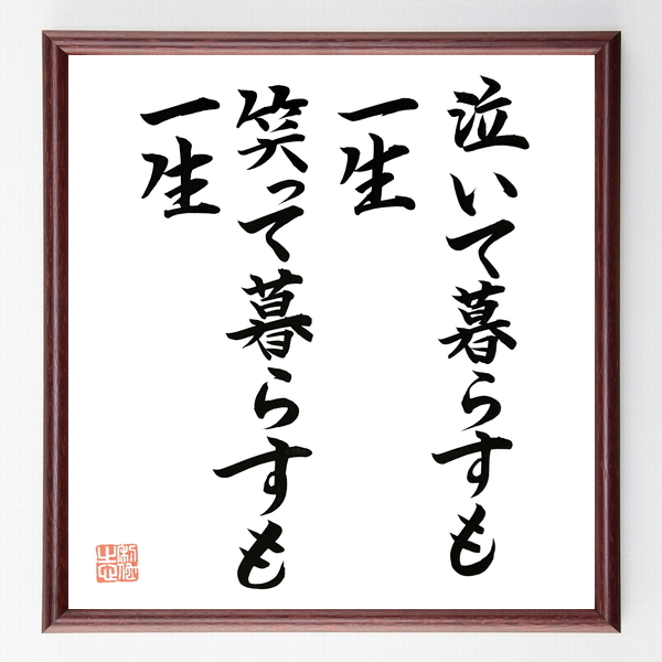 名言「泣いて暮らすも一生、笑って暮らすも一生」手書き書道色紙額/毛筆直筆済み