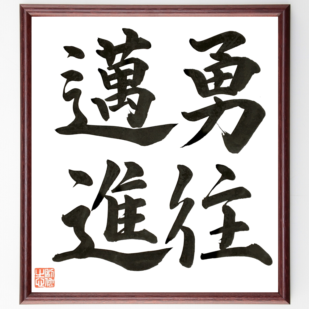 四字熟語「勇住邁進」手書き書道色紙額/毛筆直筆済み