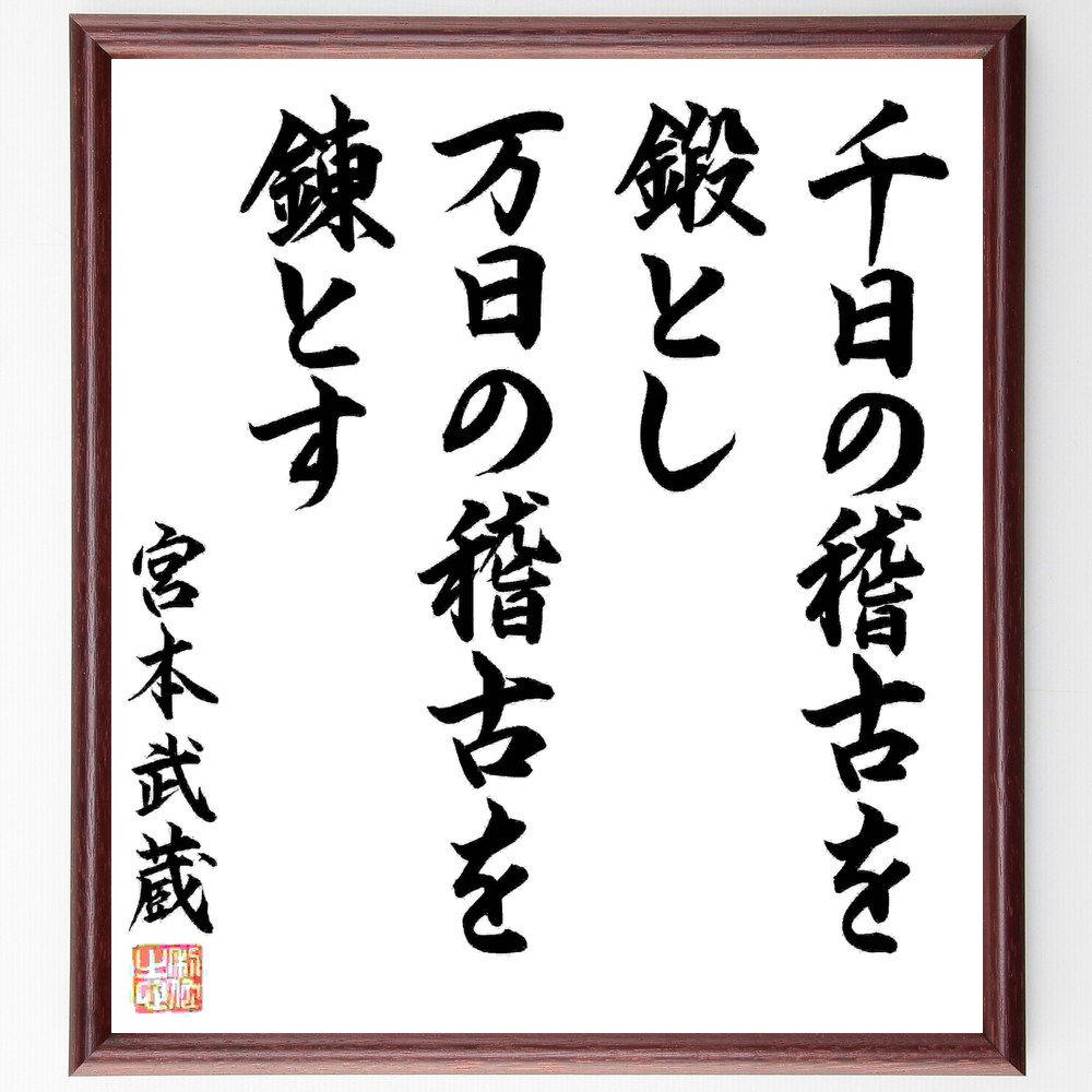 名言「千日の稽古をもって鍛となし、万日の稽古をもって錬となす」手書き書道色紙額/毛筆直筆済み