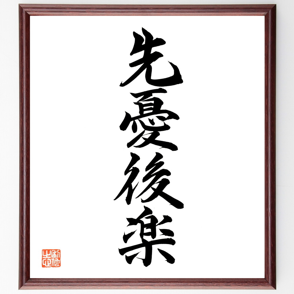 四字熟語「先憂後楽」手書き書道色紙額/毛筆直筆済み