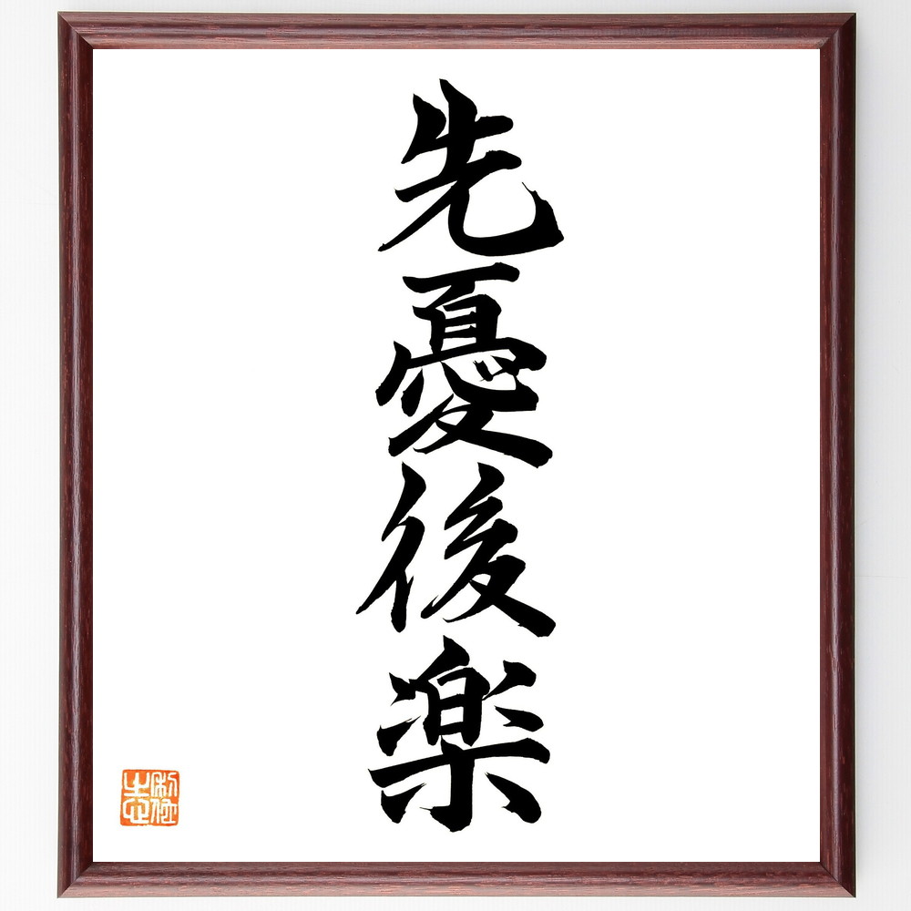 四字熟語「先憂後楽」手書き書道色紙額/毛筆直筆済み