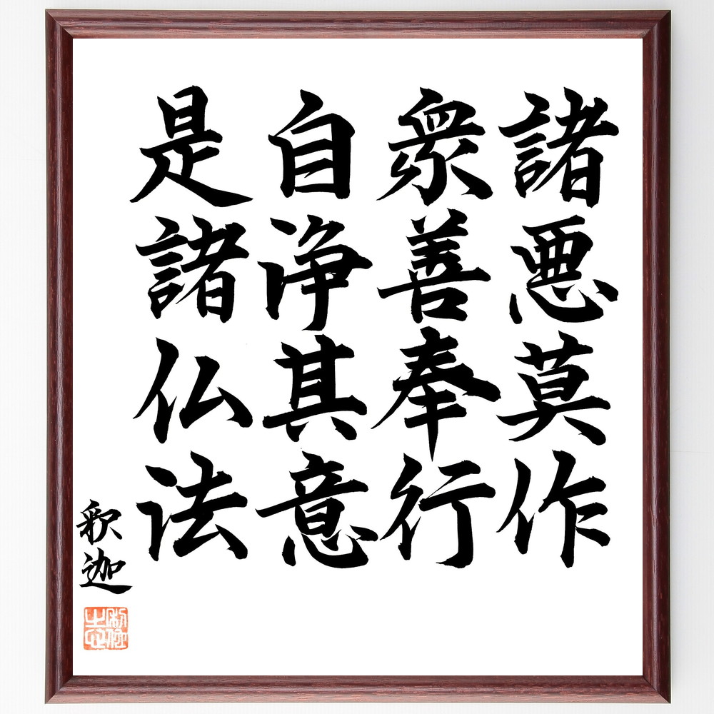 釈迦(ブッダ)の名言「諸悪莫作、衆善奉行、自浄其意、是諸仏法」手書き書道色紙額/毛筆直筆済み