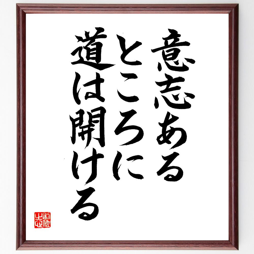 名言「意思あるところに道がひらける」手書き書道色紙額/毛筆直筆済み
