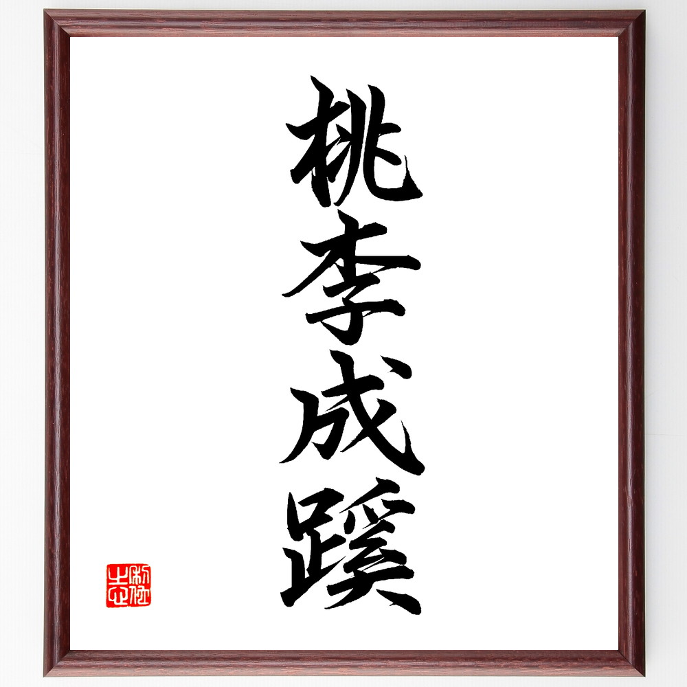 四字熟語「桃李成蹊」手書き書道色紙額/毛筆直筆済み