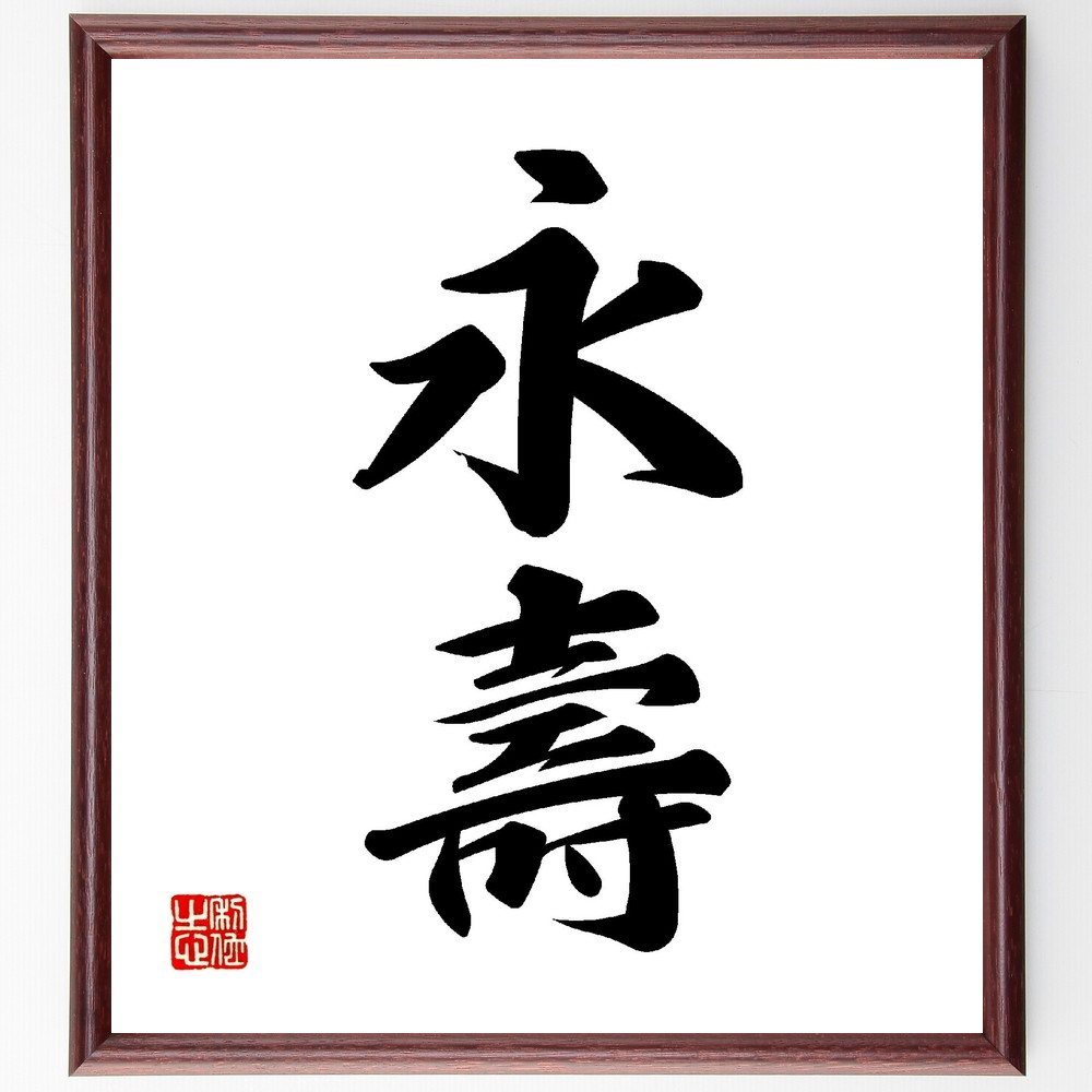 二字熟語「永壽」手書き書道色紙額/受注後の毛筆直筆