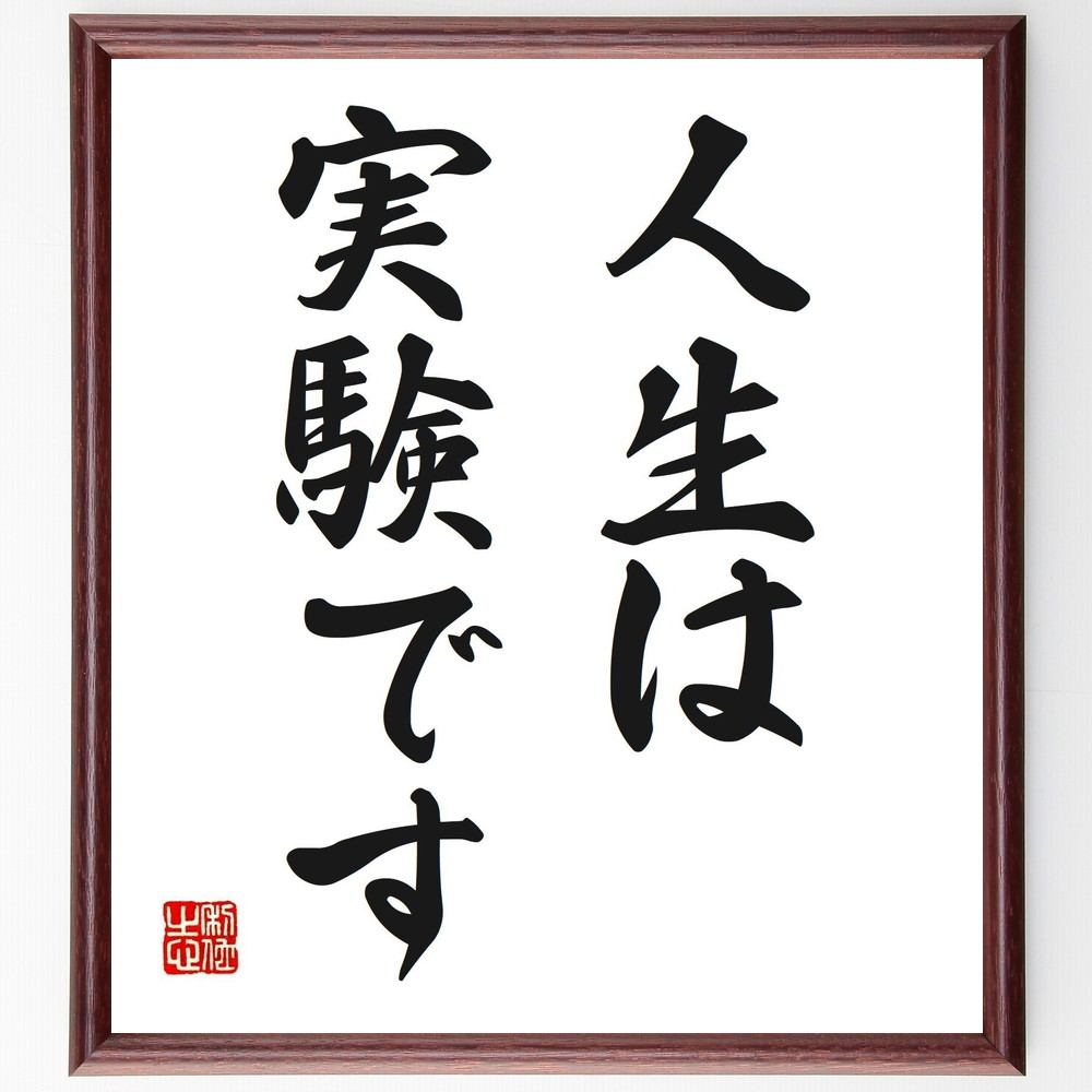 名言「人生は実験です」手書き書道色紙額/受注後の毛筆直筆