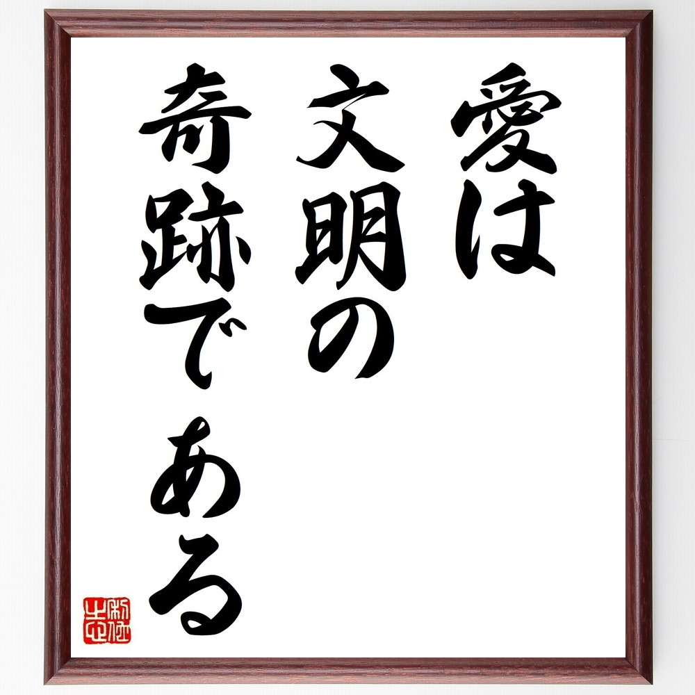 スタンダールの名言「愛は文明の奇跡である」手書き書道色紙額/受注後の毛筆直筆
