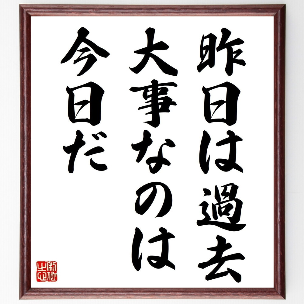 名言「昨日は過去、大事なのは今日だ」手書き書道色紙額/受注後の毛筆直筆