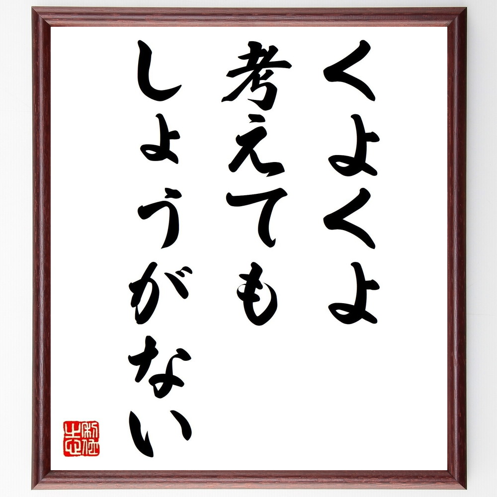 名言「くよくよ考えてもしょうがない」手書き書道色紙額/受注後の毛筆直筆
